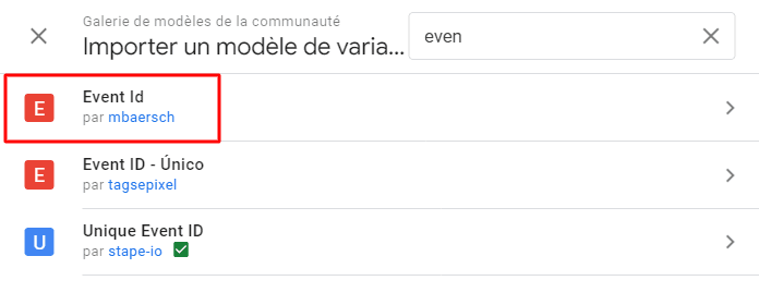 Recherchez « Event ID » et ajoutez le à votre librairie.